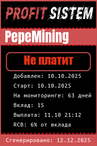 PepeMining - Описание Выплаты Статистика проекта | Хайп мониторинг ProfitSistem | Блог о инвестициях и Хайп проектах | HYIP monitoring