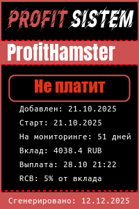ProfitHamster - Описание Выплаты Статистика проекта | Хайп мониторинг ProfitSistem | Блог о инвестициях и Хайп проектах | HYIP monitoring