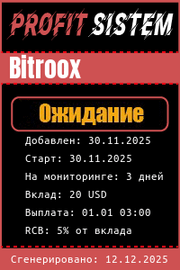 Bitroox - Описание Выплаты Статистика проекта | Хайп мониторинг ProfitSistem | Блог о инвестициях и Хайп проектах | HYIP monitoring